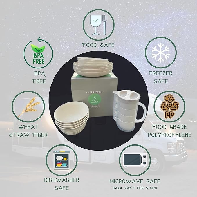 • Durable, lightweight, and unbreakable: These microwave safe plates and bowls sets is also usable in freezer and dishwasher safe. Children, teens and even pets won’t break them with regular daily use. These non breakable dinnerware is easily transported in an RV or on a camping trip for those that enjoy exploring because Glamplife providing a free bag to carry wheat straw dishes set.