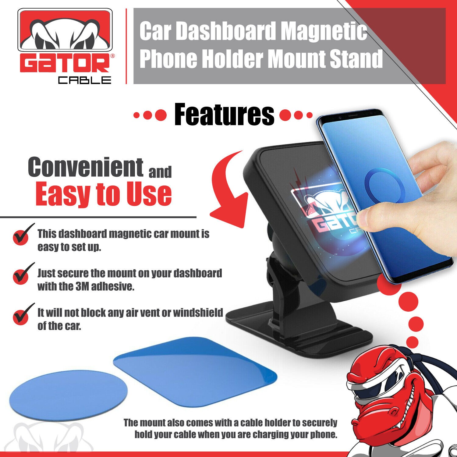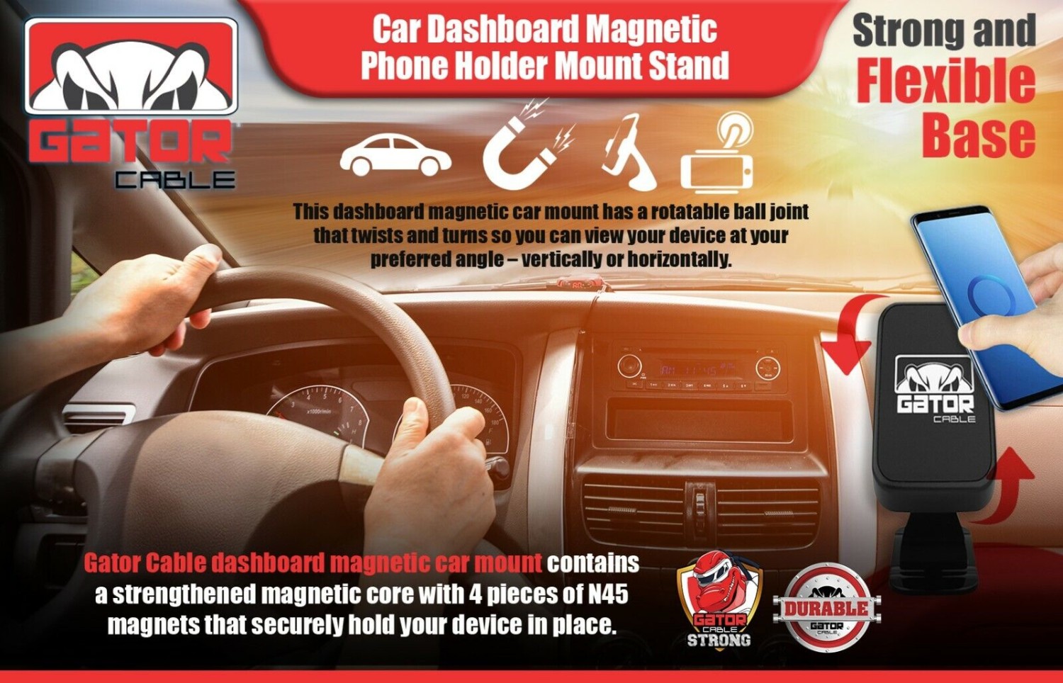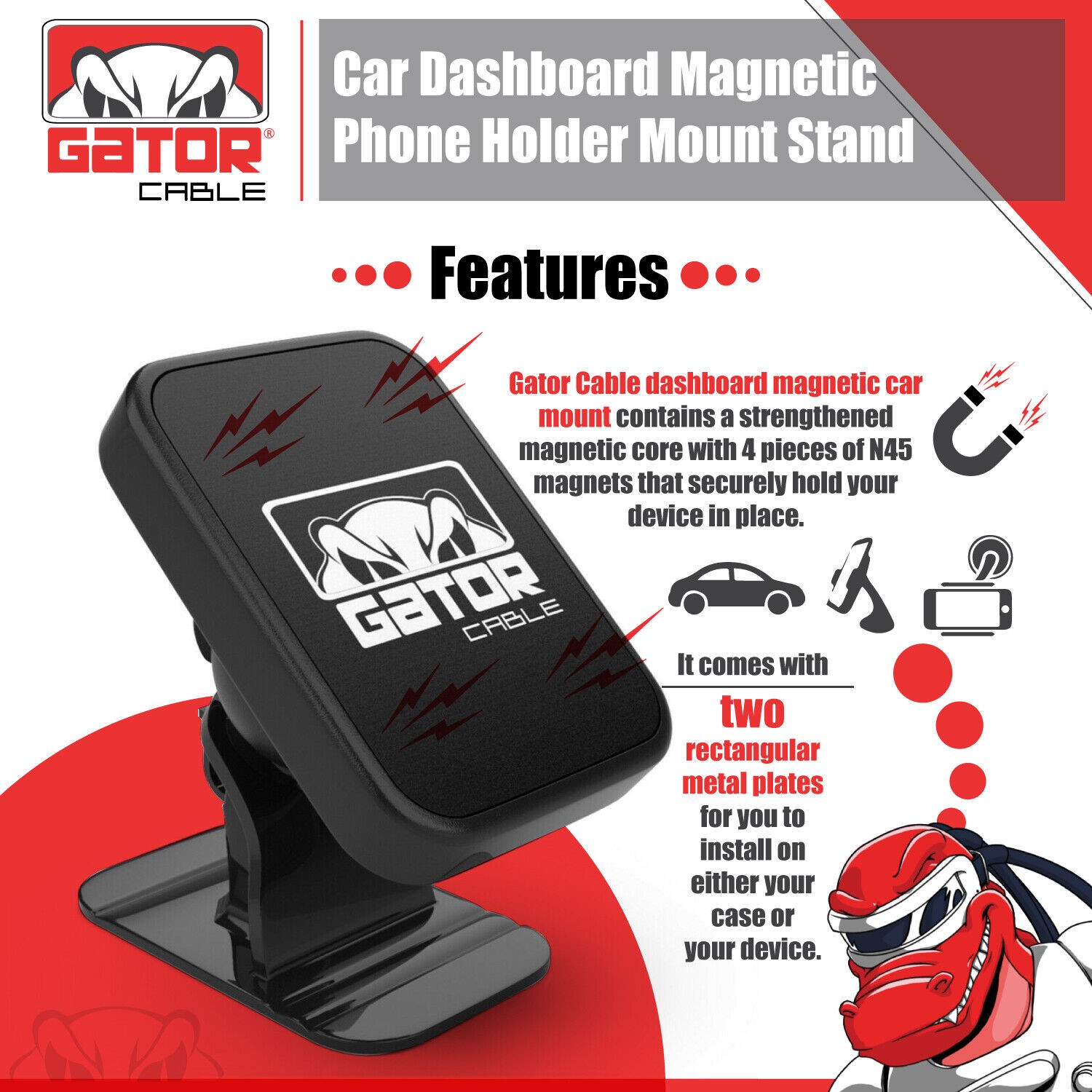 2 Metal Plates Included, Powerful Magnetic Core, Strong and Sturdy Base Mount, Adjustable Angle