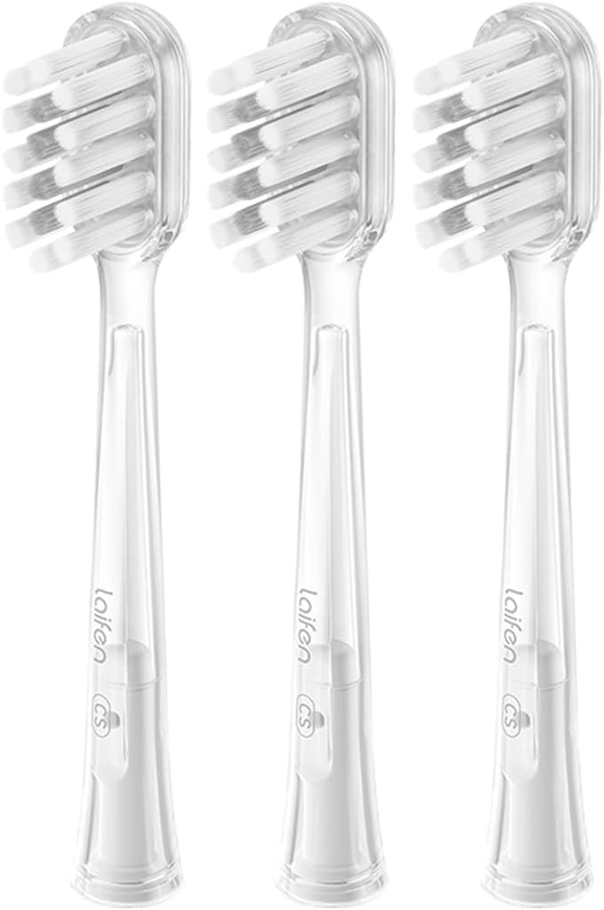• [A Fit for Every Smile] The three brush heads each suit different oral care needs. The Gum Care brush head are gentle on teeth and gums, the Super-Clean brush head reaches deep into gaps for an efficient clean, and the Ultra-Whitening brush head offers powerful cleaning to help brighten those pearly whites! What's Included: Laifen Gum Care Brush Heads (3-Pack,Transparent)