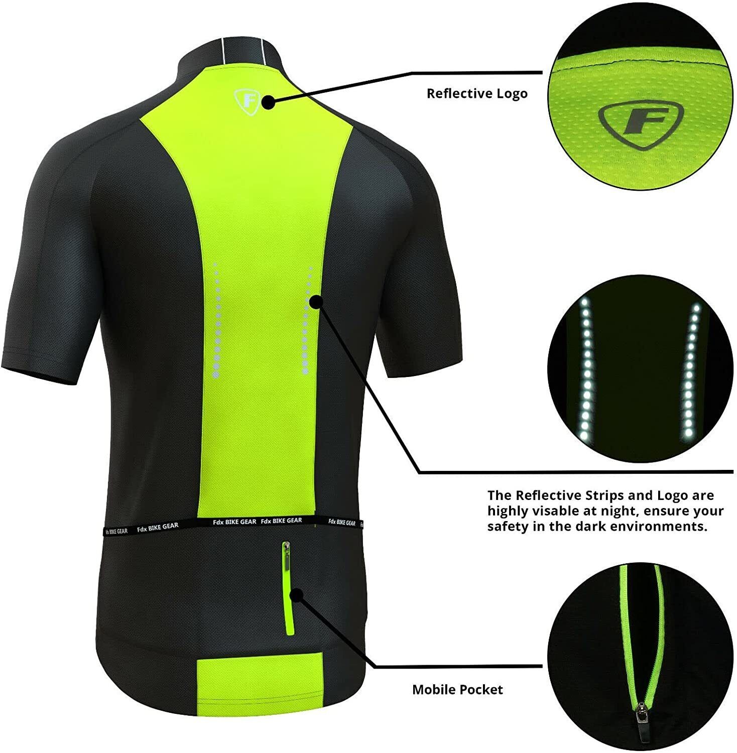 Mens Cycling Jerseys for Men Breathable Short Sleeve Bike Shirt Cycle Tops Black