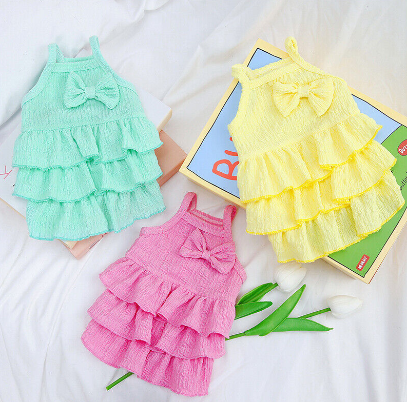 Pet candy color layered skirt, polyester material, comfortable and skin friendly fabric. Candy color, fresh and sweet. A variety of different colors are available.