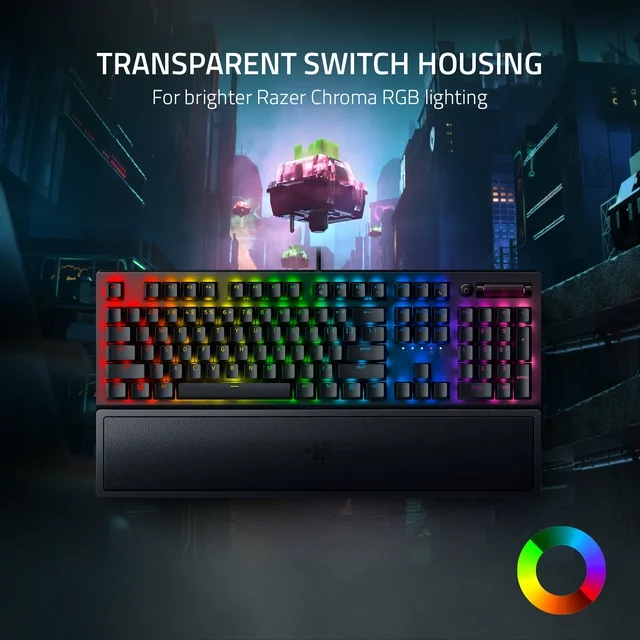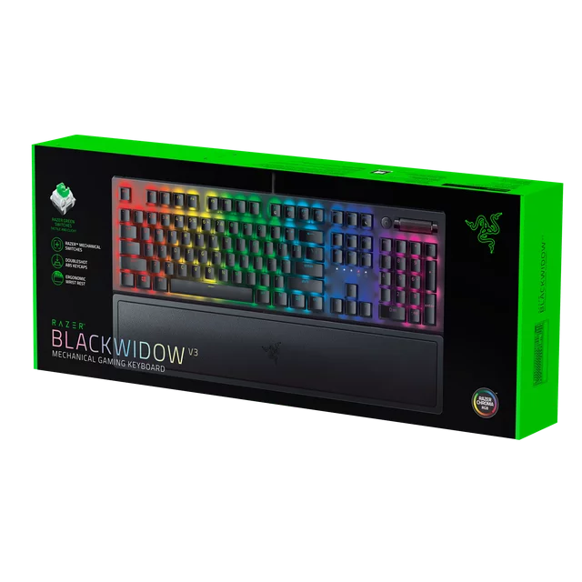 Razer BlackWidow V3 Mechanical Gaming Keyboard: Green Mechanical Switches, Tactile & Clicky, Chroma RGB Lighting, Compact Form Factor, Programmable Macro Functionality, Classic Black. The name that started it all returns to reassert its dominance. Feel the difference with the Razer BlackWidow V3; backed by a legacy as the first and most iconic mechanical gaming keyboard, and armed with new, improved features including our world-renowned green mechanical switches. Hear and feel the satisfying feedback in every keystroke you make, with a clicky, tactile design that offers optimized actuation and reset points for better precision and performance when gaming.