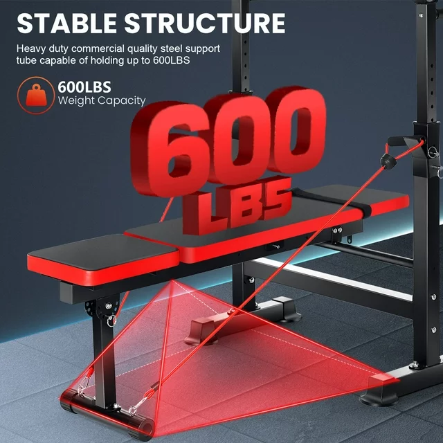 VIBESPARK Adjustable Weight Bench 600lbs 4-in-1 Foldable Workout Bench Set with Barbell Rack, Resistance Bands, Multi-Function Strength Training Bench Press Exercise Equipment for Home Gym
